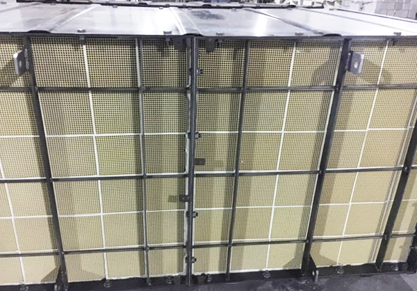 由于活性炭法對NOx和顆粒物的脫除不能滿足超低排放要求,現(xiàn)在很多企業(yè)參考濕法和半干法脫硫除塵+SCR脫硝工藝,選擇在活性炭裝置后增設(shè)SCR脫硝,脫硝溫度可設(shè)計在150-200℃,但燒結(jié)煙氣經(jīng)活性炭除塵,飛灰濃度只能控制在15-20mg/Nm³左右?;钚蕴糠▽儆谌煞ǎ瑢A金屬的捕集效率不如濕法和半干法,活性炭除塵后飛灰中堿金屬含量高達(dá)30-50wt%。同時,煙氣經(jīng)過活性炭裝置時,會將碳粉和硫酸氫銨/硫酸銨帶入到后續(xù)脫硝裝置中。在堿金屬、碳粉、硫酸氫銨/硫酸銨的協(xié)同作用下,即使煙塵濃度低至15-20mg/Nm3,經(jīng)過長期積累,催化劑發(fā)生堿金屬中毒失活和堵塞的風(fēng)險依然很高,這就對催化劑的設(shè)計提出了更高要求,如果搭配適合的催化劑,這種工藝也能穩(wěn)定運行。