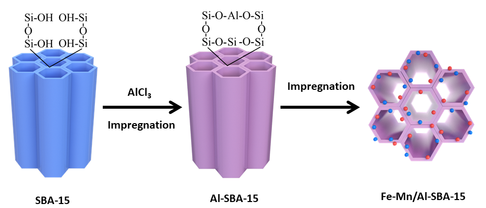 圖1. Fe-Mn/Al-SBA-15分子篩脫硝催化劑合成示意圖
