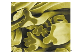 纖維形態(tài):由聯(lián)苯二酐和對(duì)苯二胺合成,黃色、具有三葉型纖維截面。在同等重量和線密度前提下,這樣的結(jié)構(gòu)大大增加了纖維的表面積,對(duì)于在過濾過程中攔截粉塵更加有利。