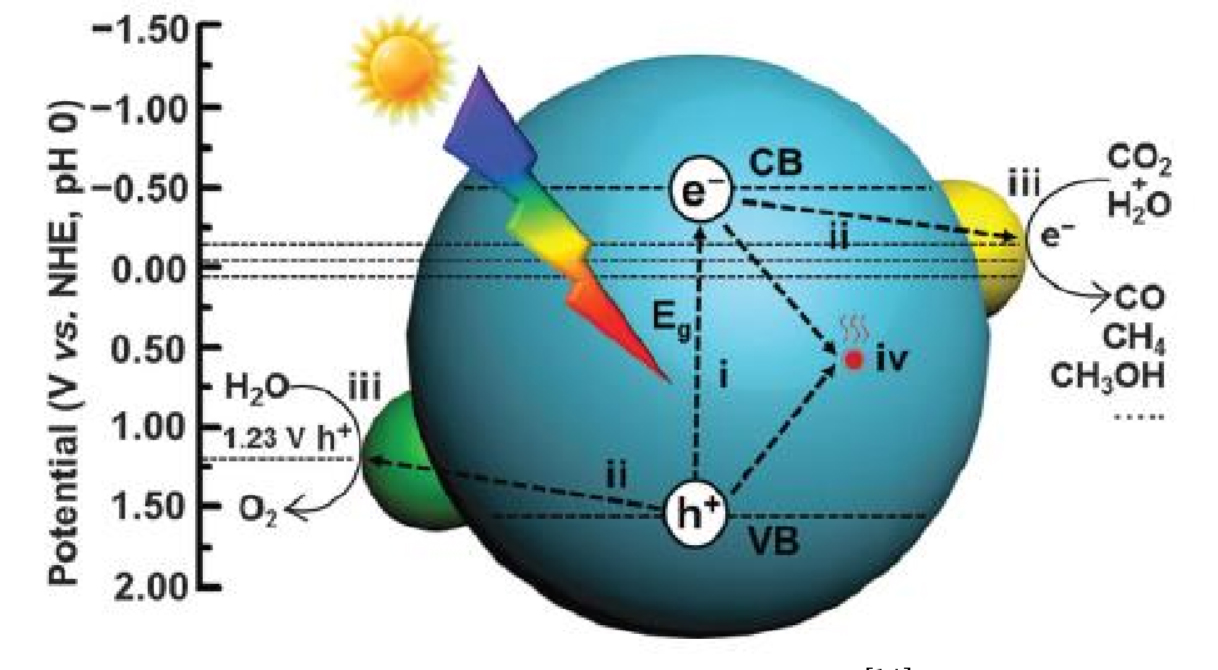 隨著現(xiàn)代社會能源需求的逐漸增加,化石能源正以逐年增長的速度慢慢消耗殆盡。同時,化石能源的燃燒伴隨著大量CO2的釋放,給全球帶來了嚴(yán)重的溫室效應(yīng)。人工光合作用——通過CO2光催化還原為有機(jī)物既可以減小CO2所帶來的溫室效應(yīng),又有可能解決能源短缺問題,可謂一舉兩得。