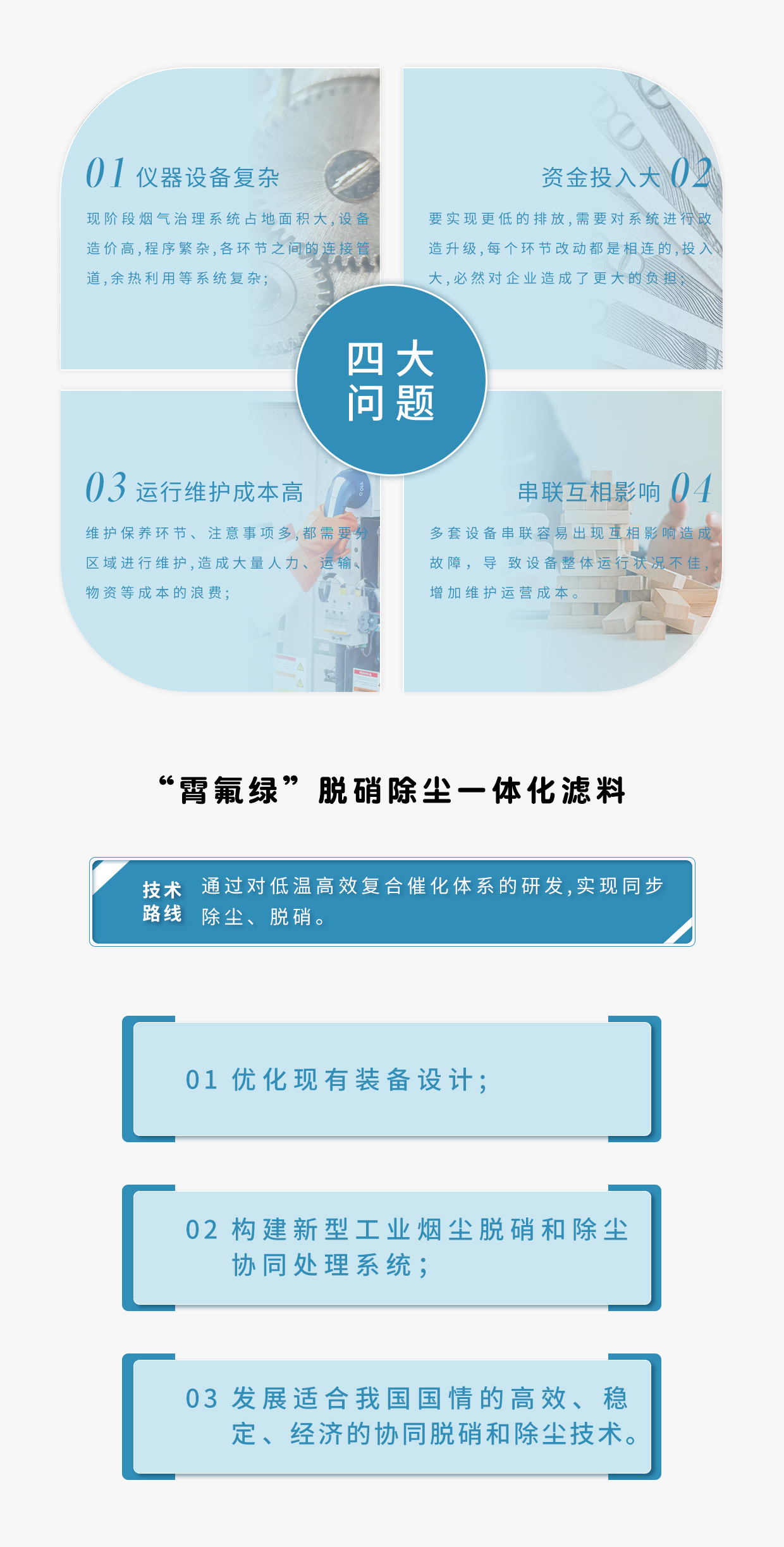 | 產(chǎn)品名稱 | 除塵脫硝一體化單層濾料 | 除塵脫硝一體化雙層濾料 | 除塵脫硝一體化覆膜濾料 | |